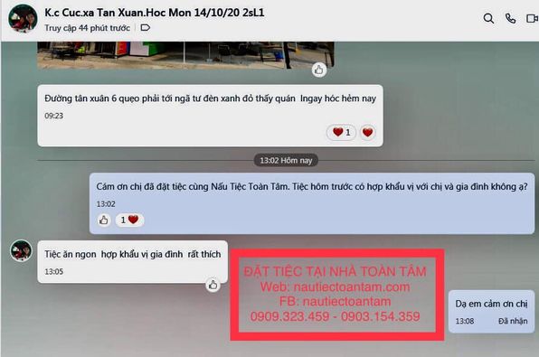 Cảm ơn Chị Cúc đã đặt niềm tin vào đội nấu Toàn Tâm đến và đặt tiệc tại nhà mình, huyện Hóc Môn, đường Ấp Chánh 9 và những lời khen có cánh đến với đội ngũ Toàn Tâm. Thực đơn tiệc :